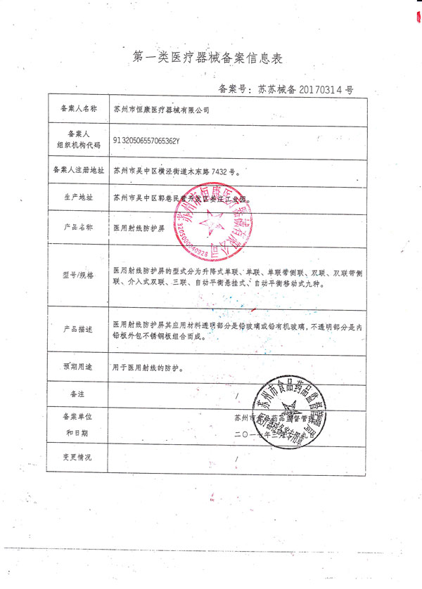 醫(yī)用射線防護(hù)屏第一類醫(yī)療器械備案