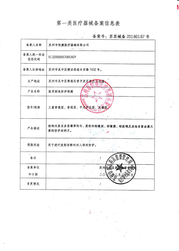 醫(yī)用射線防護(hù)眼鏡醫(yī)療器械備案介紹